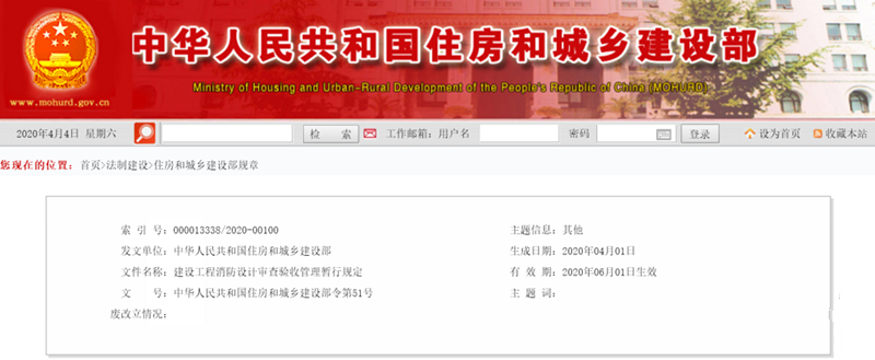 《建设工程消防设计审查验收管理暂行规定》已经2020年1月19日第15次部务会议审议通过,现予公布,自2020年6月1日起施行。