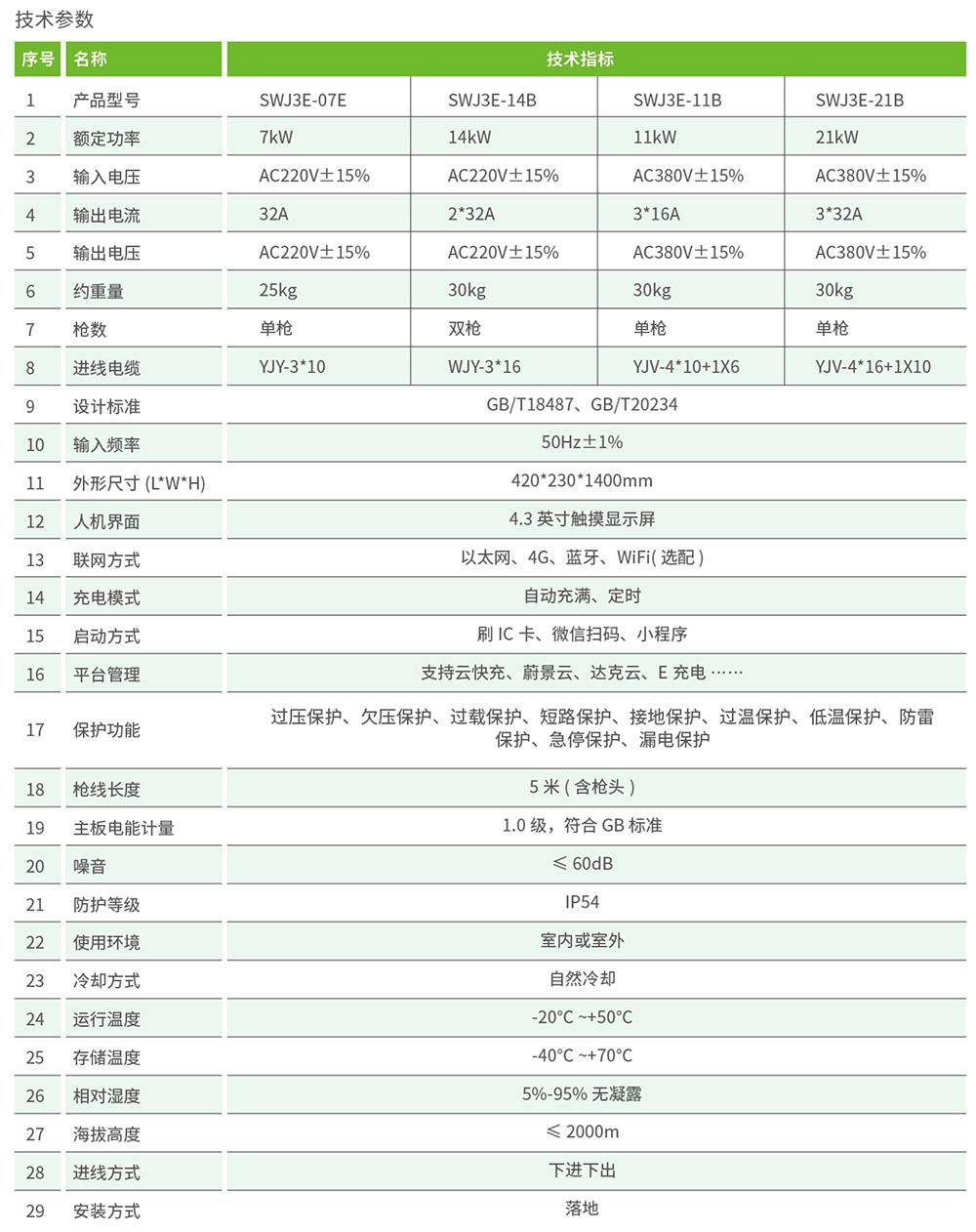 交流充电桩,俗称“慢充”,固定安装在电动汽车外、与交流电源连接,为电动汽车车载充电池提供交流电源的充电装置。产品适用于各类新能源电动汽车私家车、小容量乘用车等,安装在居民小区购物广场、电力营业场所等各种场所。