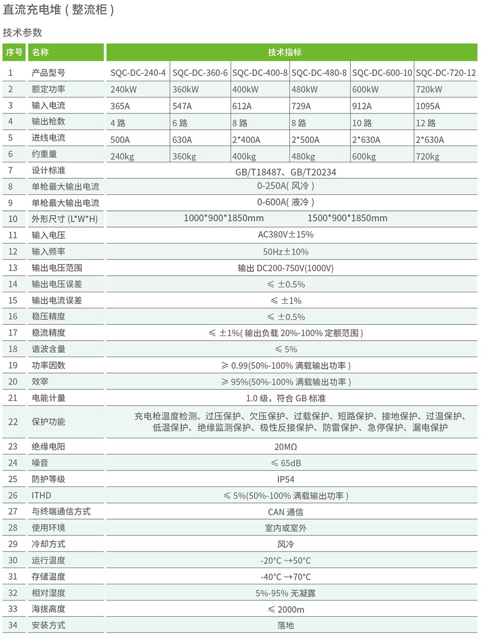 该系列直流充电桩是由具有有源功率因数自动校正功能的充电模块并机而成,可以实现四枪同时充电功能。广泛应用于矿山、工厂、物流园区停车场等各种室内外充电站中。